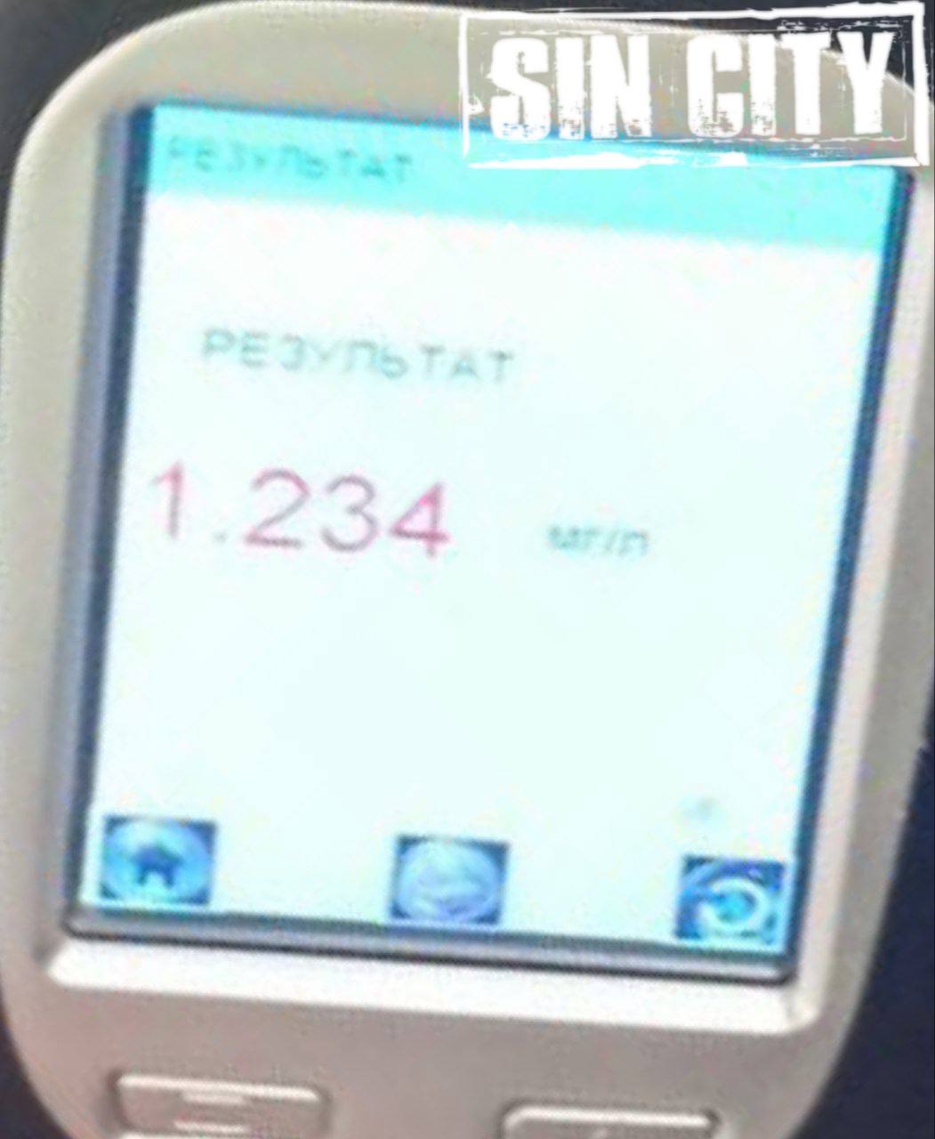 Проведенное на месте освидетельствование выявило, что водитель был очень пьян. Результат теста на алкоголь - 1,234 мг/л.