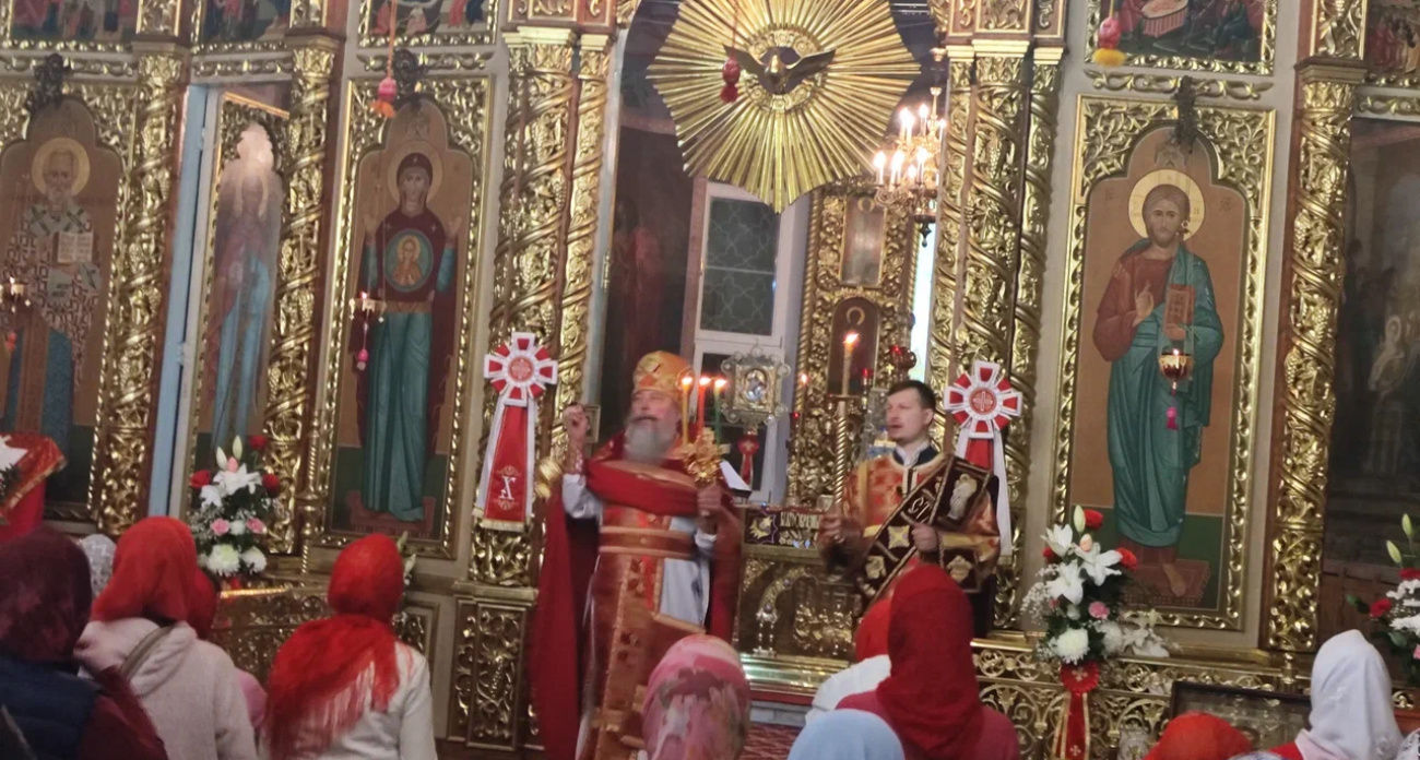 На протяжении всей службы повторялось приветствие "Христос воскресе!"