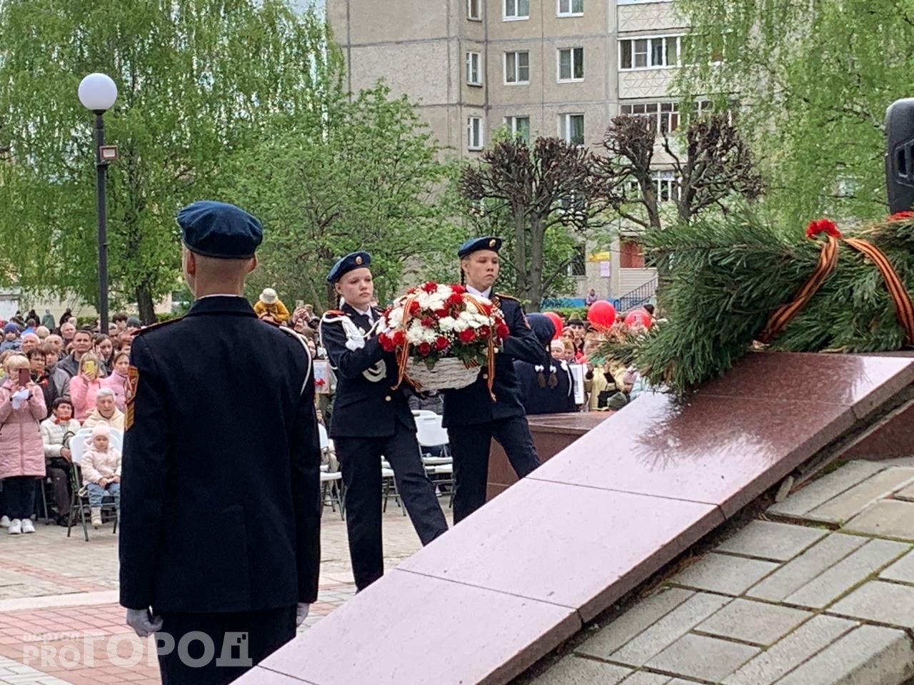 После марша юнармейцев и кадетов кульминацией торжественной части праздника стало возложение цветов к Вечному огню у городского памятника воинам Великой Отечественной войны.