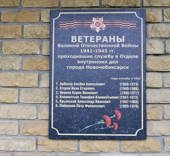 К юбилею образования органов внутренних дел Чувашии в Новочебоксарске открыли мемориальную доску. Ее посвятили ветеранам ВОВ, которые служили в МВД. Об этом рассказали в МВД по Чувашии.