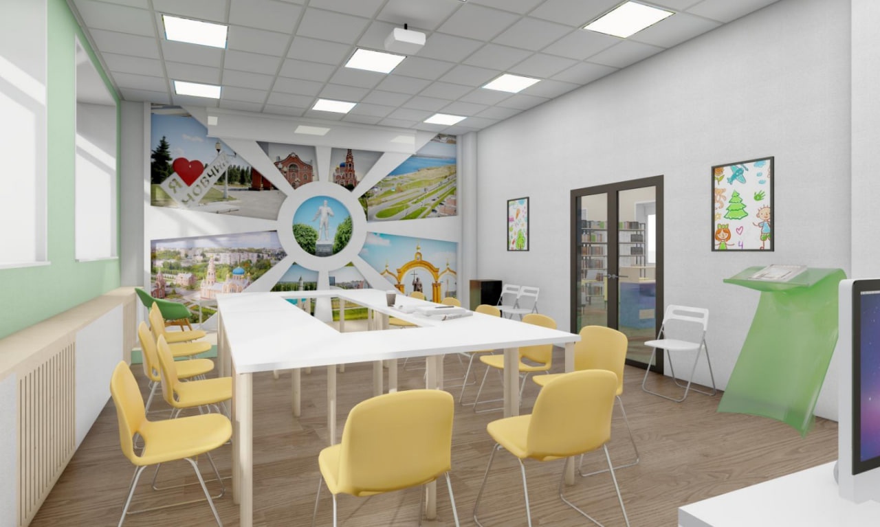Библиотека преобразуется в интеллект-центр "Гагаринка. Новые горизонты". Здесь будут разные зоны: для ожидания, для общения, для самостоятельной работы и занятий, а также пространства для массовых мероприятий и игр для детей.