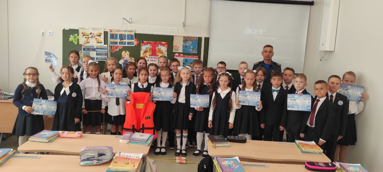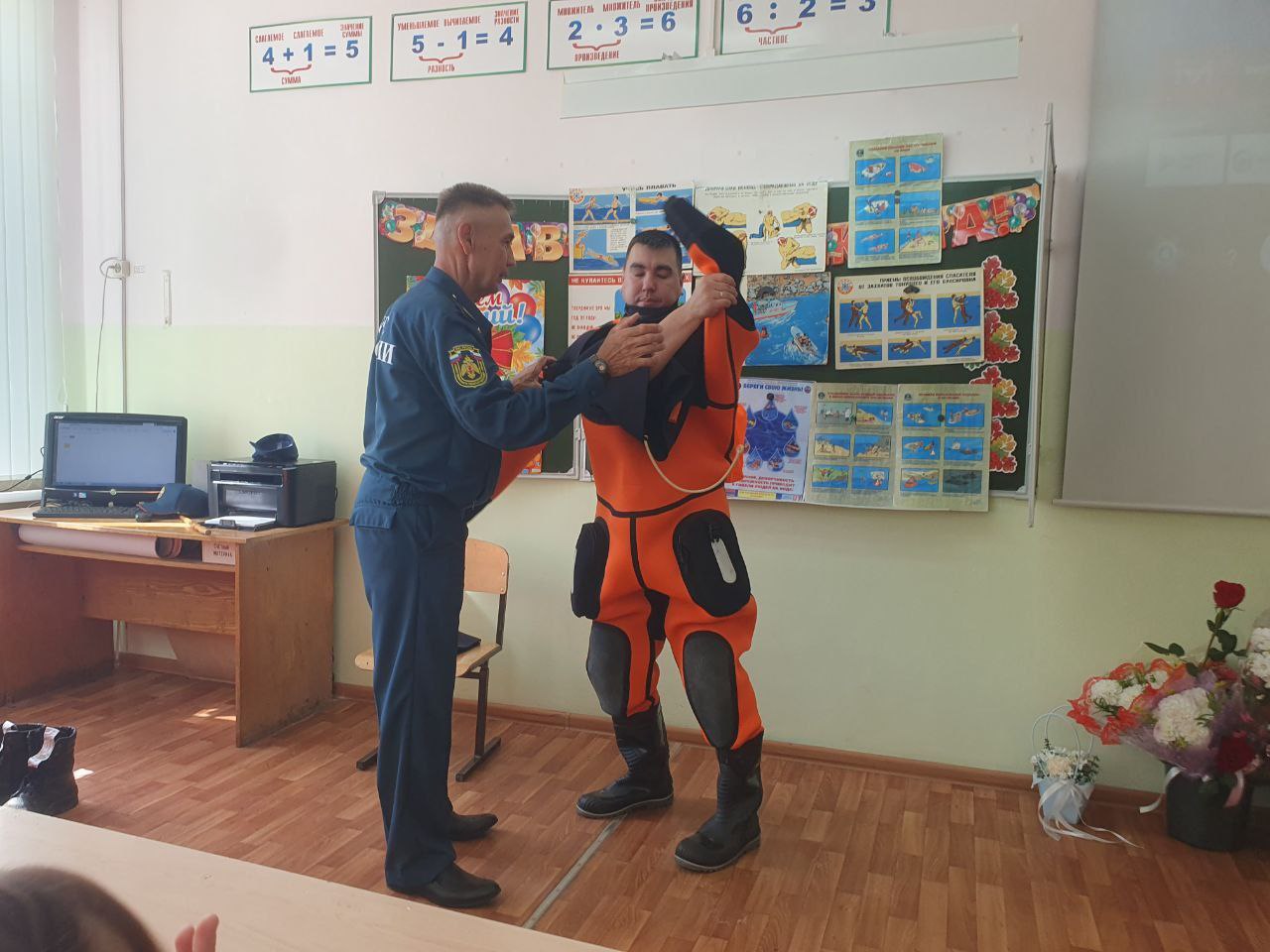 Спасатели также продемонстрировали защитный костюм и объяснили, для чего он нужен. Во время встречи напомнили телефоны экстренных служб и в завершение раздали памятки с основными правилами безопасности на воде, чтобы школьники могли их запомнить и применять на практике.