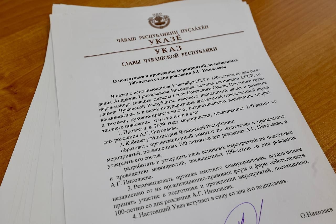 В Чувашской Республике стартовала подготовка к знаменательной дате – столетию со дня рождения Андрияна Николаева, первого космонавта из региона, дважды Героя Советского Союза. Глава Чувашии издал указ, официально объявляющий 2029 год годом празднования юбилея.