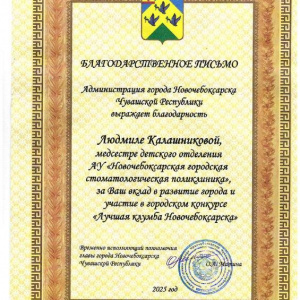 Среди сотрудников особенно выделились Галина Платонова, начальник административно-хозяйственного отдела, и Людмила Калашникова, медицинская сестра детской стоматологии. Они были награждены благодарственными письмами от администрации Новочебоксарска. Их внимательность к работе и трудолюбие помогли сделать клумбы учреждения самыми красивыми в городе.