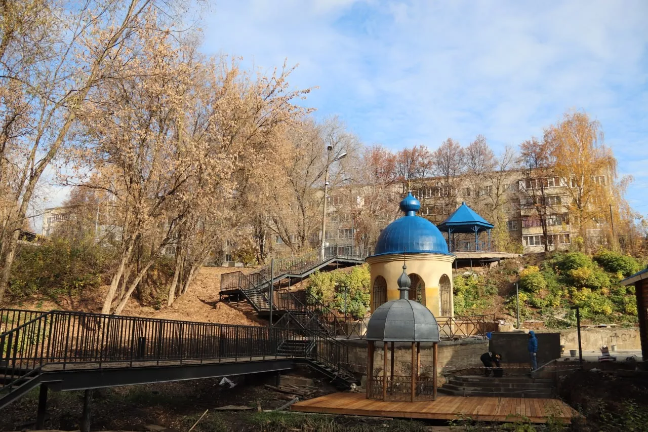 Большая часть работ уже сделана: установили освещение, выложили гранит на участке с беседкой и смотровой площадкой, обустроили лестницу от собора к роднику. Далее рабочие занялись облицовкой памятника князю Владимиру и укладкой настила из лиственницы около родника.
