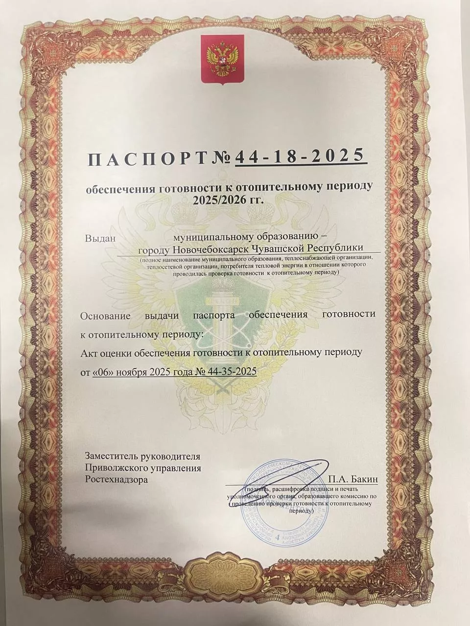 Новочебоксарск получил паспорт готовности к новому отопительному сезону