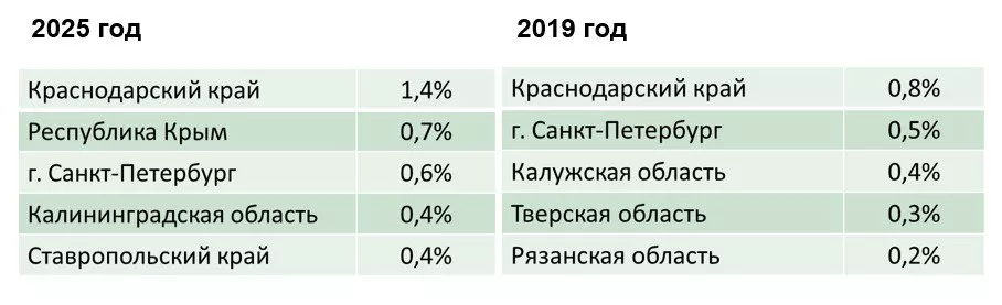 Карта регионов, жители которых активно скупают столичную и подмосковную недвижимость, изменилась похожим образом. По сравнению с 2019 годом в 2025 году в топ-5 не вошли регионы-соседи, но появились Санкт-Петербург и Краснодарский край. Однако такие изменения следует объяснять уже не преодолением «квартирного голода», а, наоборот, снижением доступности жилья на фоне роста цен и высоких рыночных ставок. В этой ситуации позволить себе купить столичную недвижимость могут уже далеко не все.