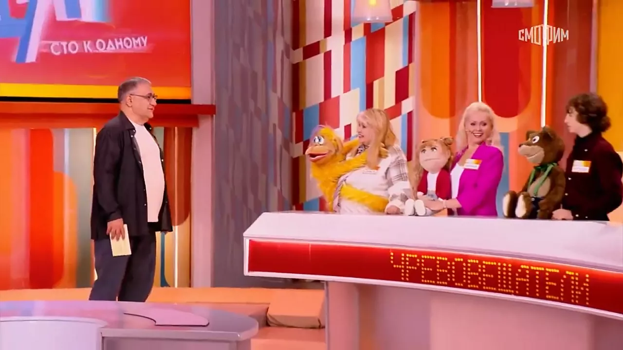 В выпуске телевикторины "Сто к одному" команда "Чревовещатели" играла против команды "Импровизаторы".