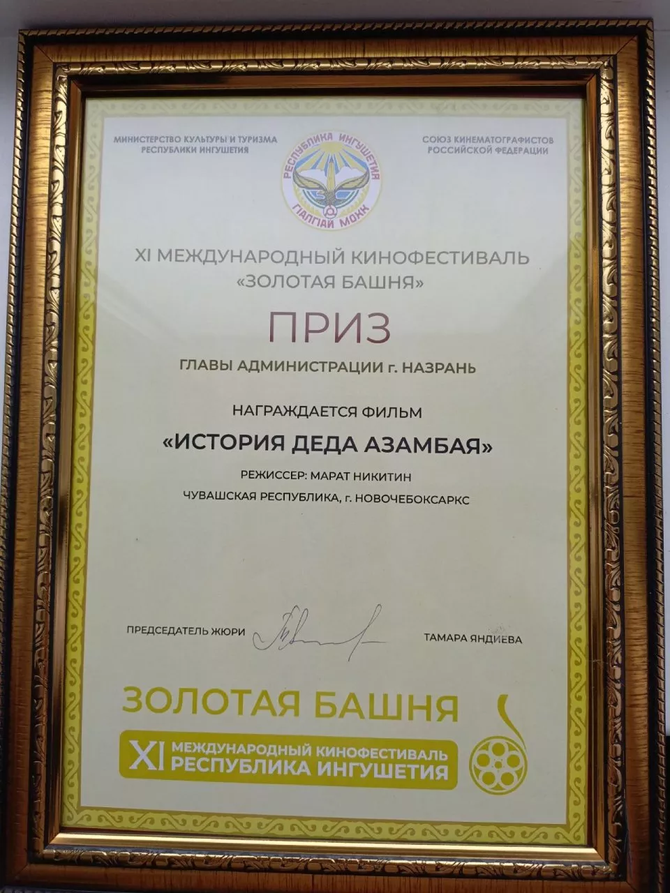 XI Международный кинофестиваль "Золотая башня" прошел в Республике Ингушетия в ноябре 2025 года, собрав игровые, документальные и анимационные фильмы из разных стран на более чем десяти киноплощадках республики. Учредителями фестиваля выступили Министерство культуры Республики Ингушетия и Союз кинематографистов России. Среди представленных картин особое внимание привлек фильм "История деда Азамбая" новочебоксарского режиссера Марата Никитина, основанный на повести Михаила Юхмы. Фильм из Чувашии был удостоен приза главы администрации города Назрань.