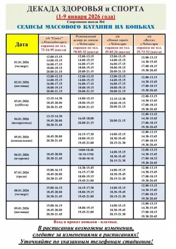 Наступил новый 2026 год. И в первый день года жители Новочебоксарска могут посетить рощу, Ледовый дворец "Сокол", также откроется каток на Центральном стадионе. Об этом сообщают АУ "Ельниковская роща", СШОР № 3 и ЛД "Сокол" Новочебоксарска.