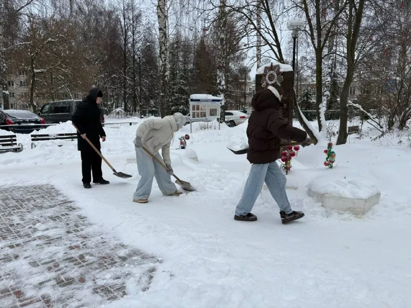 Ребята почистили от снега сам памятник, а также территорию вокруг него.