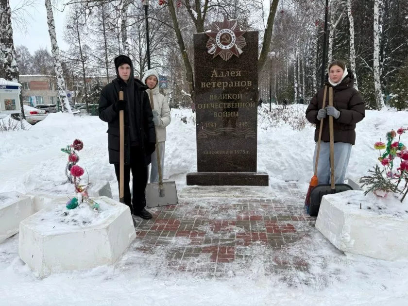 В рамках акции “Снежный десант” несколько активистов из числа учеников гимназии № 6 вызвались очистить от снега обелиск в честь ветеранов Великой Отечественной на аллее ветеранов у городской стоматологической поликлиники.