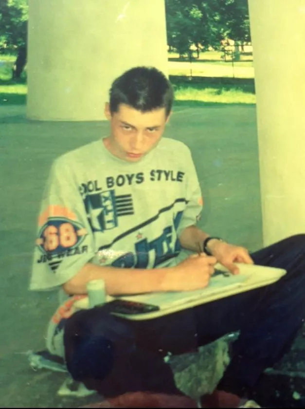 Он признается, что не был примерным подростком, ходил с друзьями в кинотеатр "Победа", рисовал граффити в подъездах и однажды совершил кражу, после чего сделал выводы и решил держаться подальше от криминала.