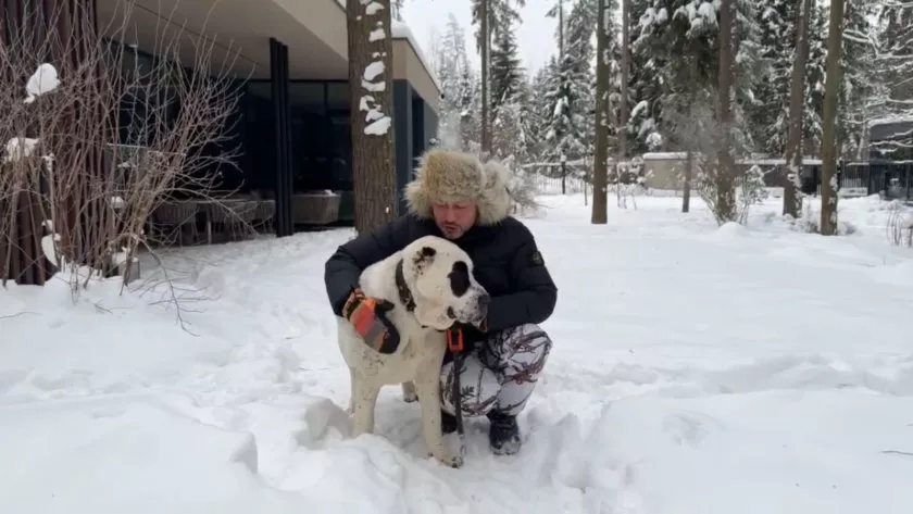 Еще одним важным членом семьи стала собака породы алабай по кличке Панда, с которой он любит гулять вокруг дома.