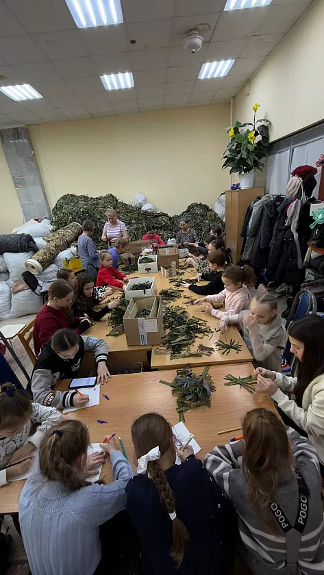 Девочкам показали, как устроены сети, объяснили, для чего они нужны на передовой, после чего они сами сделали первые заготовки для будущих маскировочных полотен. Во время визита юные спортсменки не только осваивали плетение, но и занялись другими видами помощи защитникам.