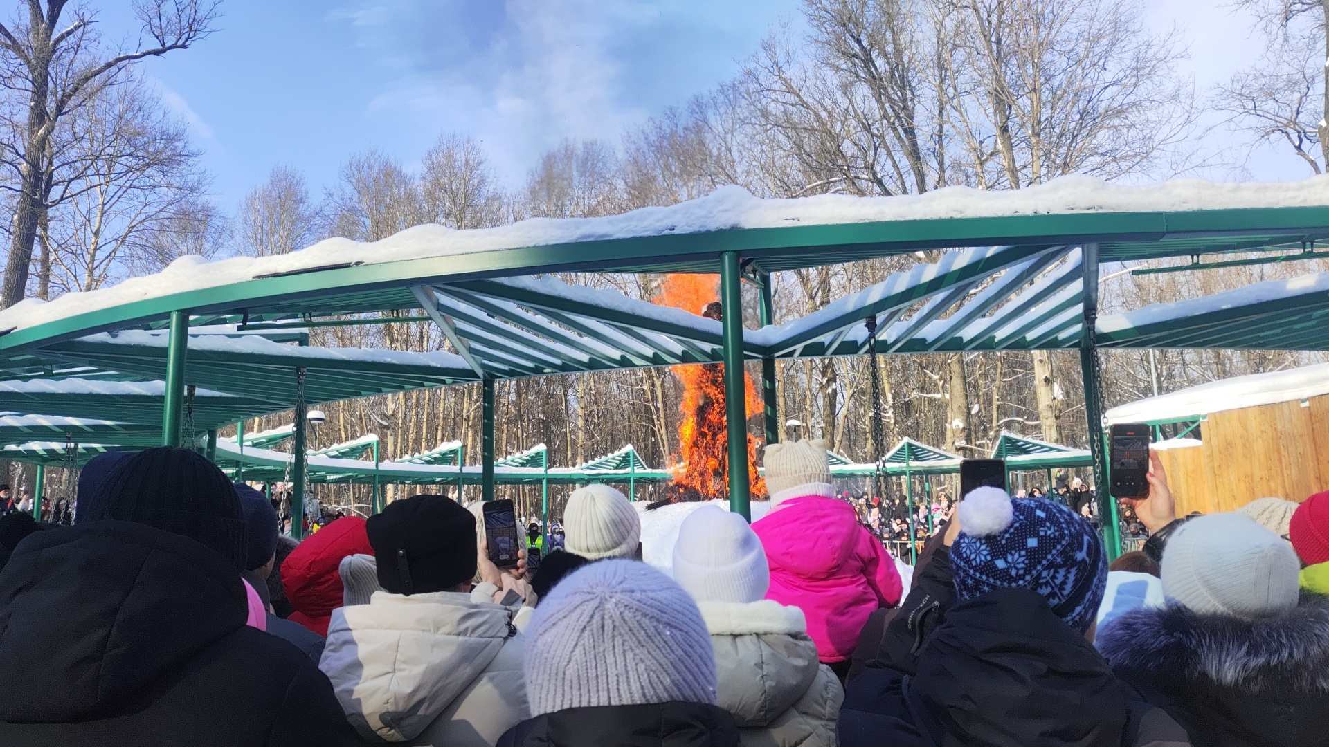 Новочебоксарцы проводили зиму песнями, танцами и сожжением чучела Масленицы