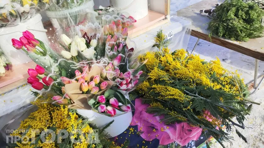 Мимозу и тюльпаны продают у ТЦ "Экспресс". И, конечно, тюльпаны и розы вы найдете в цветочных магазинах.