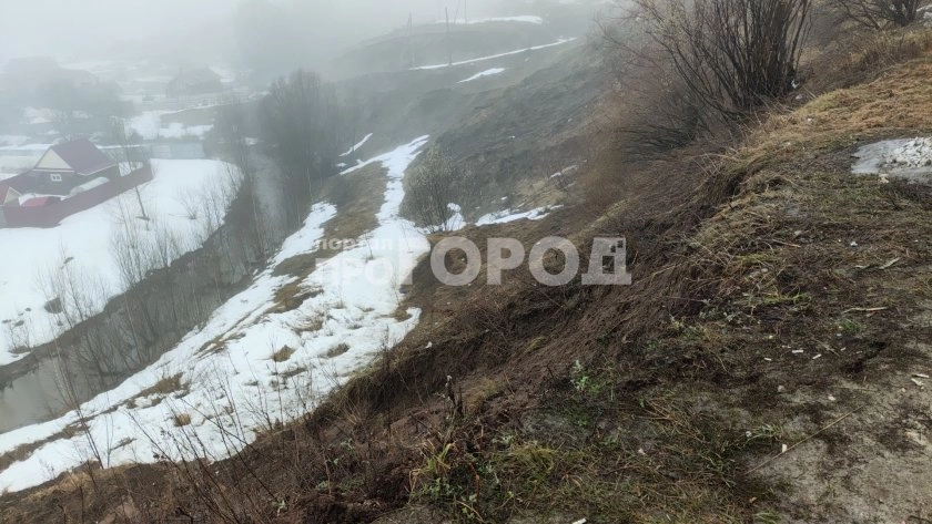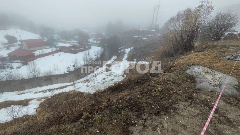 Территория рядом с оползнем сейчас огорожена сигнальной лентой, однако подойти к самому краю оврага по-прежнему может любой желающий. Рядом с местом, где сошла земля, хорошо заметна трещина в земле.