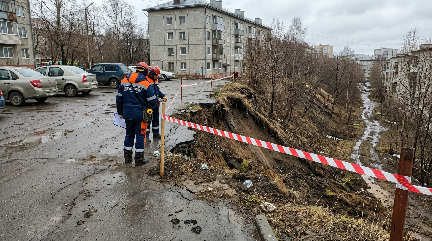 Вблизи дома № 7а по улице Южной зафиксировано смещение почвы в сторону оврага. Городская администрация провела проверку территории и установила контрольные маяки для отслеживания возможных сдвигов грунта. В ближайшее время эксперты проведут геологические работы для оценки состояния склона. На данный момент прямой угрозы для строений не зафиксировано.