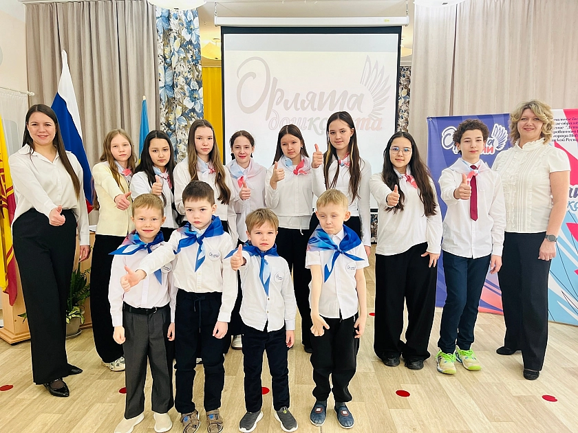 В завершение дети произнесли торжественную клятву Орленка и спел гимн движения. После этого им вручили орлятские галстуки и значки.