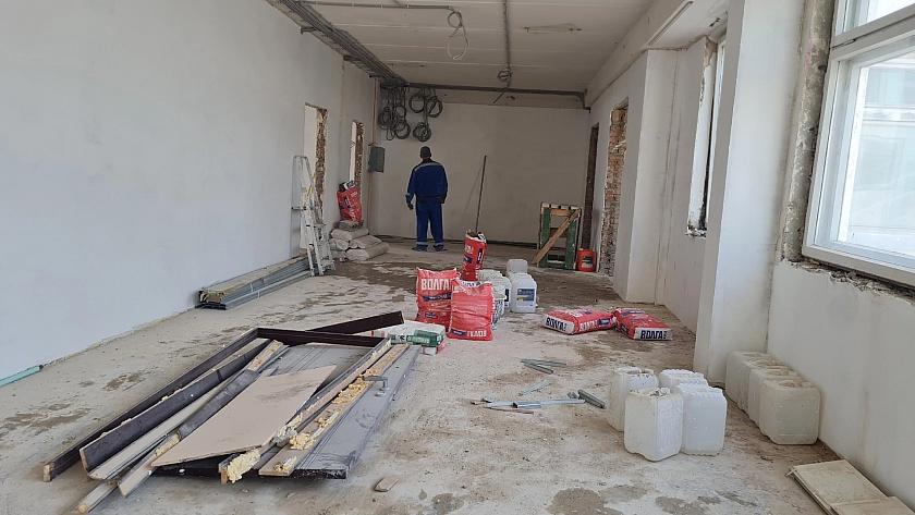 По контракту с подрядной организацией ООО "Стройиндустрия" в школе ведёэется комплексное обновление здания: в начале года были развернуты демонтажные работы, после чего начались основные подготовительные и строительные операции. Сейчас 50 % фасада уже утеплены и идет активная подготовка к облицовке здания. Скоро завершат работу с системой электросетей.