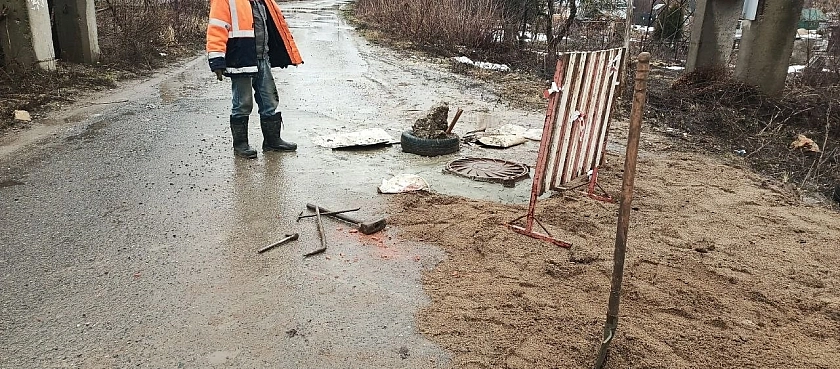 Из‑за таяния снега в разных районах города уже появились провалы грунта, повреждаются смотровые и водопроводные колодцы. Бригады предприятия выезжают на место, восстанавливают разрушенные колодцы, выполняют засыпку образовавшихся провалов и укрепляют размытые участки у инженерных сетей.