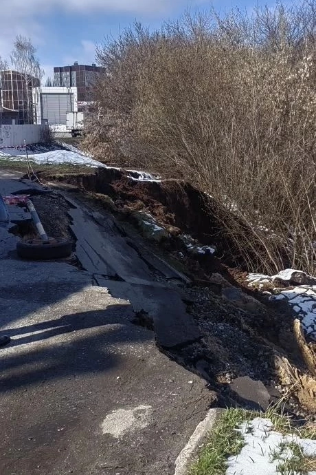 У торгового центра «Эссен» зафиксировано обрушение асфальтового покрытия из-за оползня. Городские власти осмотрели место происшествия и вынесли предписание собственнику участка. Поскольку территория находится в долгосрочной аренде, ответственность за предотвращение дальнейшего разрушения грунта полностью лежит на арендаторе.