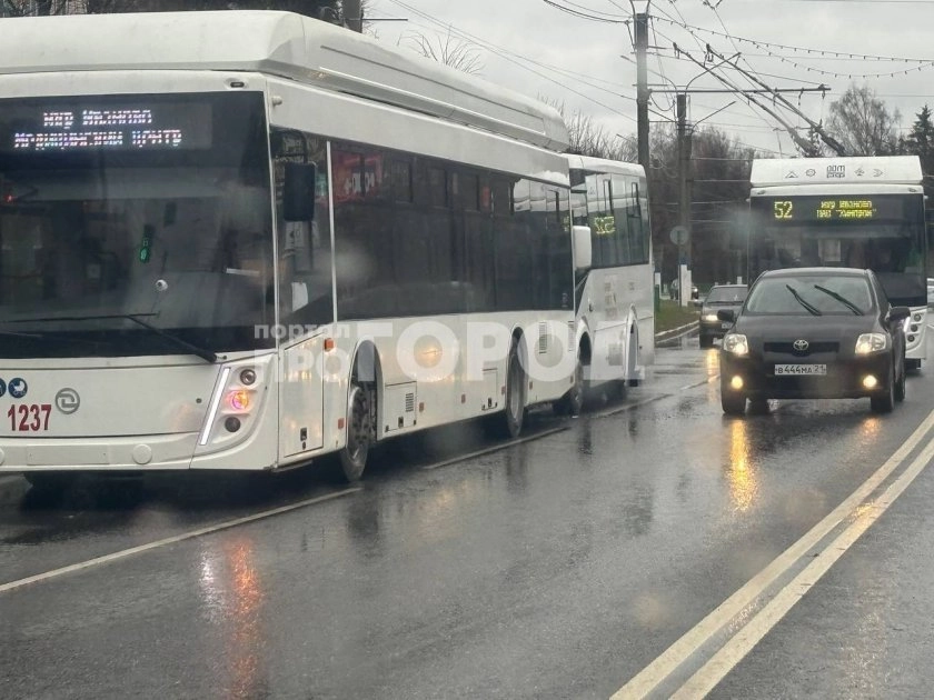 В Новочебоксарске перед светофором автобус догнал троллейбус