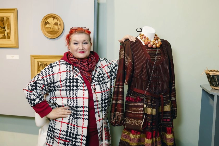 Виктория Язарова, дизайнер, художник и педагог, сочетает разные техники и материалы, создает коллекции одежды и аксессуаров в народном стиле и сувениры.