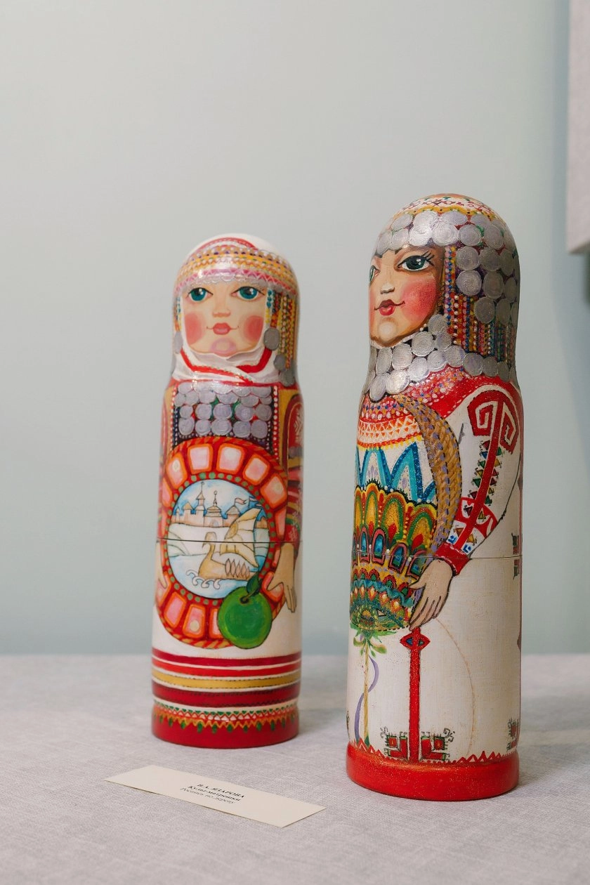 На выставке мастерица оказала деревянные матрешки с авторской росписью и костюм в чувашском стиле.