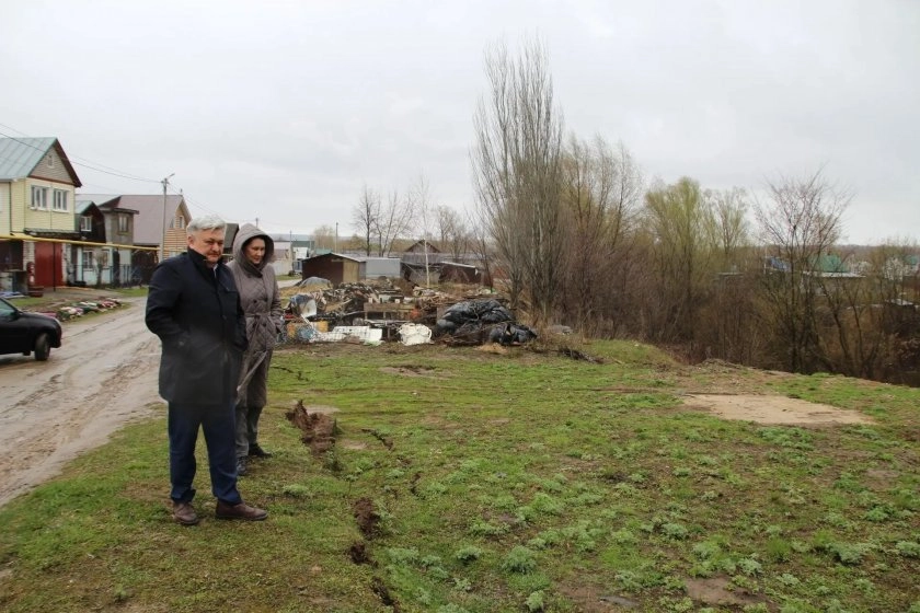 28 апреля в зоне возможного смещения грунта провели обследование территории и уточнение границ опасного участка в районе оврага на улице Зелинского.