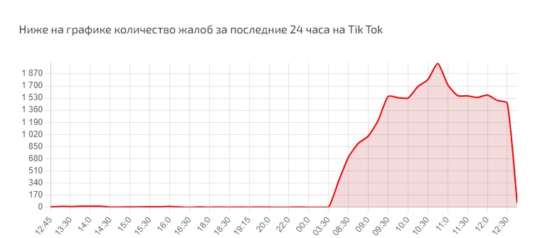 По данным сайта Сбой.рф и сообщений от пользователей, первые жалобы на неполадки в работе TikTok появились 25 января около 03:30. Пик сообщений о сбое пришелся на 10:45.