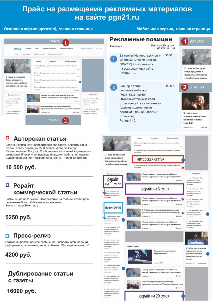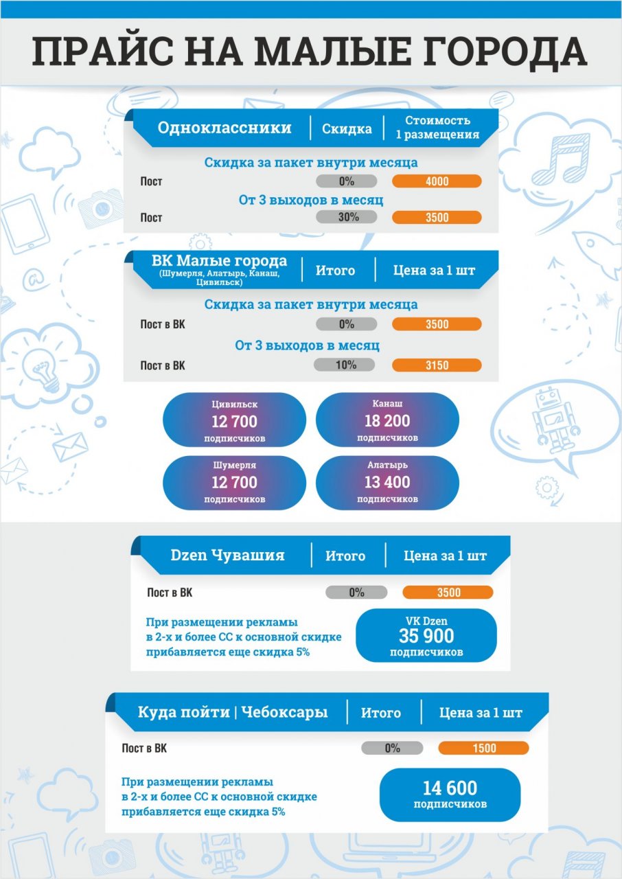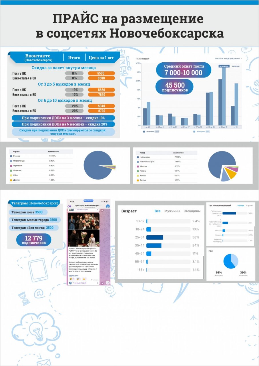 Прайс публикаций на портале и в соцсетях Про Город Новочебоксраск и Чебоксары